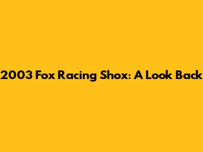 2003 Fox Racing Shox: A Look Back