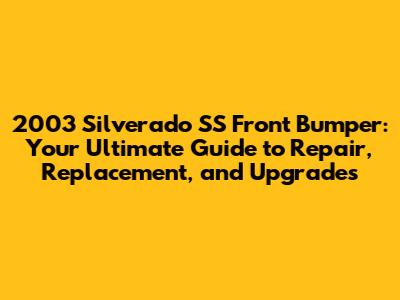 Understanding Your 2003 Silverado SS Front Bumper: Common Issues and Problems