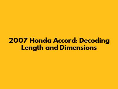 2007 Honda Accord: Length, Specs, And More!