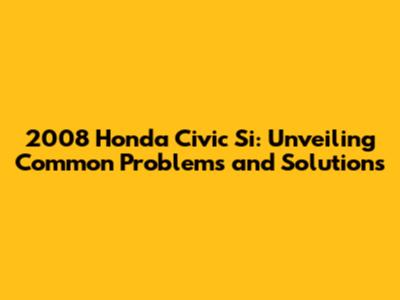 2008 Honda Civic Si: Common Issues & Solutions
