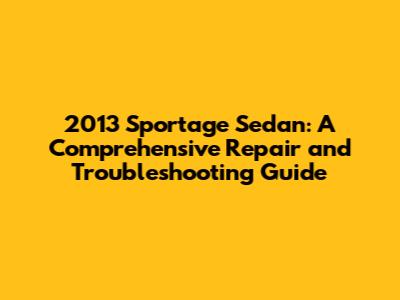 2013 Sportage Sedan: Troubleshooting & Repair Guide