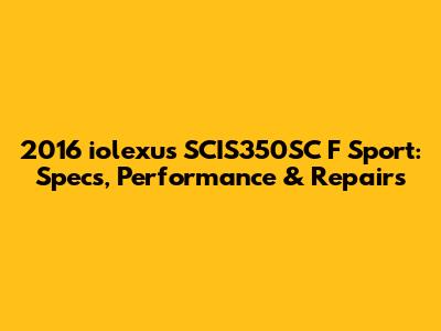 2016 Iolexus SCIS350SC F Sport: Specs, Performance & Repairs