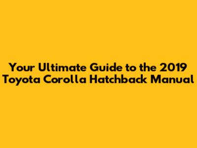 2019 Toyota Corolla Hatchback: Your Essential Manual Guide