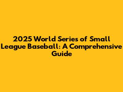 2025 World Series Of Small League Baseball: A Comprehensive Guide