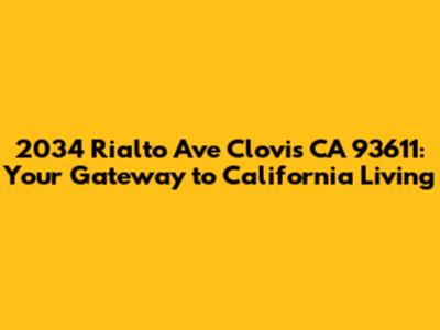 Hey guys! Are you on the hunt for the perfect place to call home in sunny California? Well, look no further! Let's dive into everything that makes 2034 Rialto Ave in Clovis, CA 93611 a fantastic opportunity. This isn't just about an address; it's about a lifestyle, a community, and a place where memories are made. We're going to break down why this location is so desirable, what the area has to offer, and why 2034 Rialto Ave could be the perfect fit for you and your family. From the top-notch schools to the vibrant local scene, Clovis has something for everyone. So, grab a coffee, settle in, and let’s explore why 2034 Rialto Ave is more than just an address – it's a place to call home.