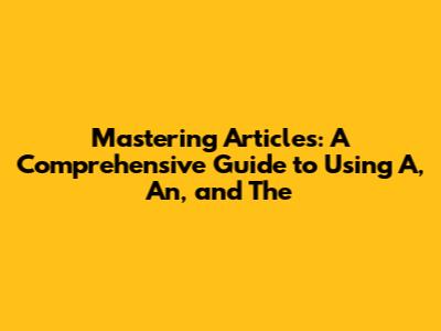 A, An, Or The: Mastering Articles In English Grammar