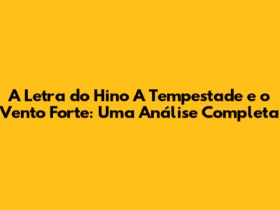 A Letra Do Hino 'A Tempestade E O Vento Forte': Uma Análise Completa
