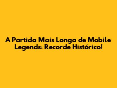 A Partida Mais Longa De Mobile Legends: Recorde Histórico!