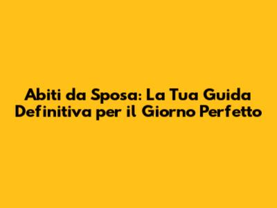Ciao a tutti, futuri sposi! Oggi ci immergiamo nel meraviglioso mondo degli abiti da sposa. Preparatevi a scoprire tutto ciò che c'è da sapere per trovare l'abito perfetto che vi farà brillare nel giorno più importante della vostra vita. Che siate alla ricerca di un classico senza tempo, di un modello moderno e audace, o di qualcosa di unico che rispecchi la vostra personalità, questa guida è pensata apposta per voi. Dagli stili più popolari ai tessuti più pregiati, passando per i consigli pratici e le ultime tendenze, vi accompagneremo passo dopo passo in questo emozionante viaggio. Pronti a dire sì all'abito dei vostri sogni? Allora, iniziamo!