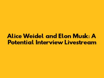 Alright, folks, buckle up because we're diving into a hypothetical scenario that's got the internet buzzing: an interview between Alice Weidel and Elon Musk! Imagine the possibilities, the potential fireworks, and the sheer intellectual horsepower that would be on display. This isn't just any interview; it's a clash of titans, a meeting of minds that could reshape how we think about politics, technology, and the future. Let's break down why this would be an absolute must-watch event and what we might expect if this livestream ever actually happened. This is something that could be very interesting and the ideas shared could go a long way.