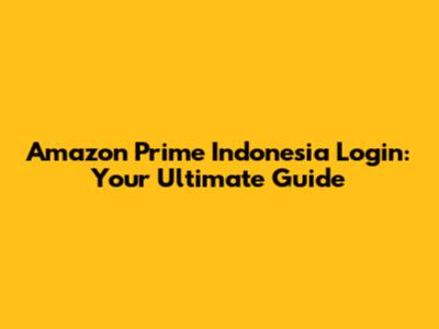 Amazon Prime Indonesia Login: Your Ultimate Guide