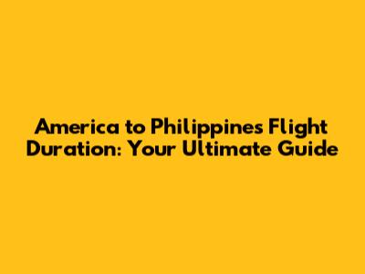 America To Philippines Flight Duration: Your Ultimate Guide
