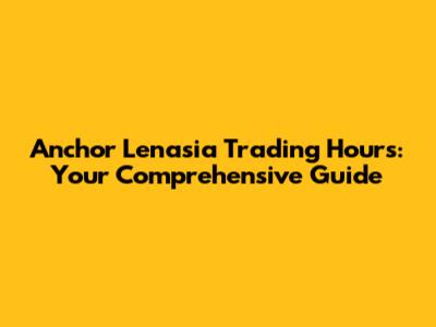 Anchor Lenasia: Your Guide To Updated Trading Hours