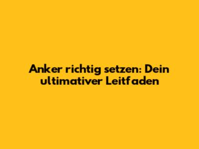Anker Richtig Setzen: Dein Ultimativer Leitfaden