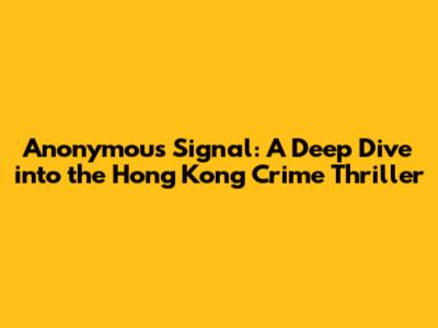 Anonymous Signal: A Deep Dive Into The Hong Kong Crime Thriller