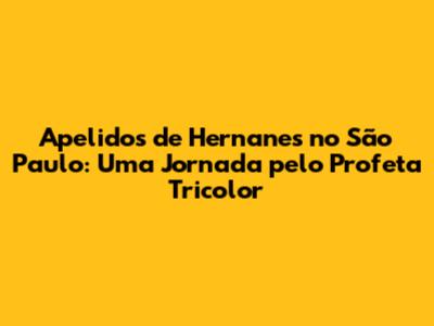 Apelidos De Hernanes No São Paulo: Uma Jornada Pelo Profeta Tricolor