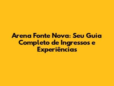 Arena Fonte Nova é um dos estádios mais emblemáticos do Brasil, palco de grandes eventos esportivos e culturais. Se você é fã de futebol, música ou busca por uma experiência inesquecível, este guia completo te ajudará a entender tudo sobre ingressos, como comprá-los, e o que esperar ao visitar essa arena fantástica. Vamos mergulhar no universo da Arena Fonte Nova ingresso, desvendando todos os detalhes para que você aproveite ao máximo cada momento!