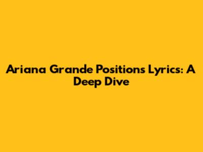 Ariana Grande Positions Lyrics: A Deep Dive