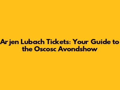 Arjen Lubach Tickets: Get Your Oscosc Avondshow Seats!