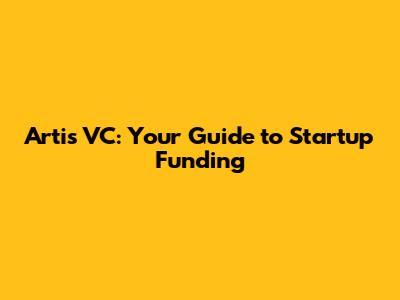 Artis VC: Your Guide To Startup Funding