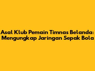 Asal Klub Pemain Timnas Belanda: Mengungkap Jaringan Sepak Bola