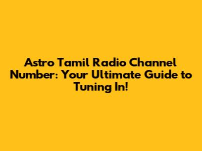 Astro Tamil Radio: Channel Number Guide & How To Tune In!