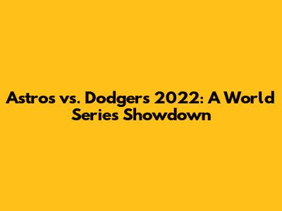 Astros Vs. Dodgers 2022: A World Series Showdown