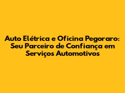 Auto Elétrica E Oficina Pegoraro: Soluções Completas Para Seu Carro