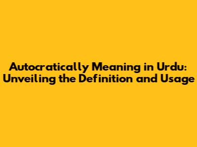 Autocratically Meaning In Urdu: Definition & Usage