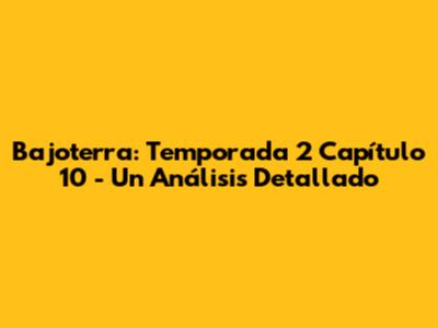 Bajoterra Temporada 2 Capítulo 10 es un episodio que te encantará. ¡No te lo pierdas!
