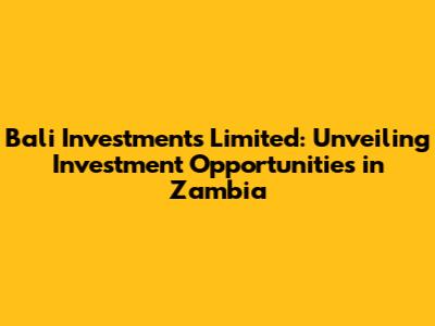 Bali Investments Limited: Unveiling Investment Opportunities In Zambia