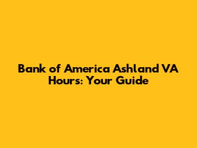 Bank Of America Ashland VA Hours: Your Guide