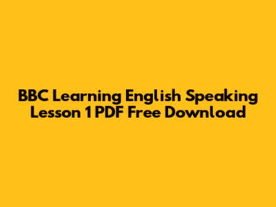 BBC English Speaking: Free Lesson 1 PDF Download