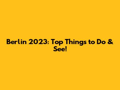 Berlin 2023: Top Things To Do & See!