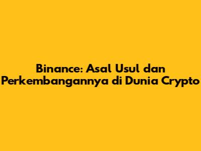 Binance: Asal Usul Dan Perkembangannya Di Dunia Crypto
