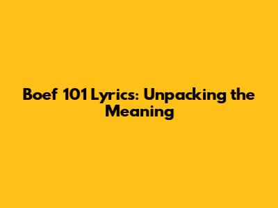 Boef 101 Lyrics: Unpacking The Meaning