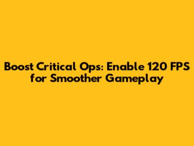 Boost Critical Ops: Enable 120 FPS For Smoother Gameplay