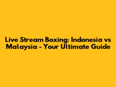 Boxing Indonesia Vs Malaysia Live Stream