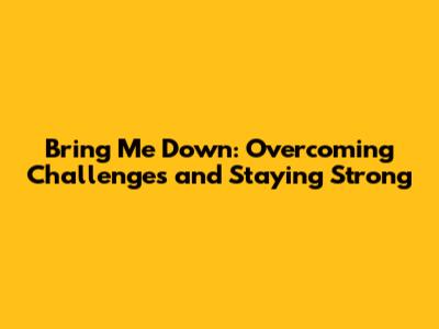 Bring Me Down: Overcoming Challenges And Staying Strong