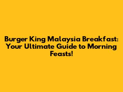Burger King Malaysia Breakfast: Menu & Prices