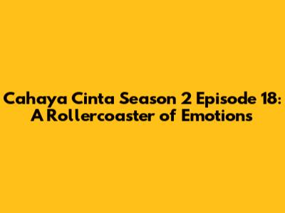Hey guys, get ready! We're diving deep into Cahaya Cinta Season 2 Episode 18. If you're anything like me, you've been on the edge of your seat, waiting to see what new drama and heart-fluttering moments this episode would bring. And trust me, it did not disappoint! This episode of Cahaya Cinta was a whirlwind of emotions, filled with secrets, betrayals, and, of course, the ever-present threads of love that keep us all hooked. So, grab your snacks, settle in, and let's break down all the juicy details, shall we?