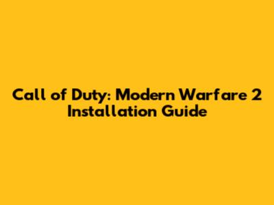 Call Of Duty: Modern Warfare 2 Installation Guide