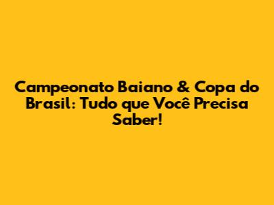 Campeonato Baiano & Copa Do Brasil: Tudo Que Você Precisa Saber!
