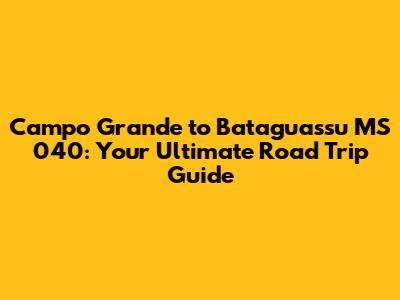 Understanding the Route: Campo Grande to Bataguassu MS 040