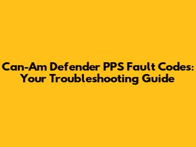 Can-Am Defender PPS Fault Codes: Ultimate Troubleshooting