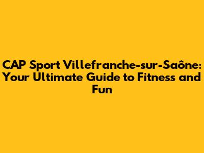 CAP Sport Villefranche-sur-Saône: Your Ultimate Guide