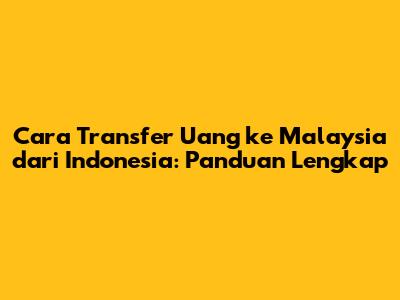 Cara Transfer Uang Ke Malaysia Dari Indonesia: Panduan Lengkap