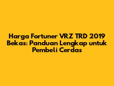 Harga Fortuner VRZ TRD 2019 bekas – Kalian para penggemar SUV gagah pasti sudah gak asing lagi dengan Toyota Fortuner, kan? Nah, kalau kalian lagi kepikiran buat memboyong Fortuner VRZ TRD keluaran tahun 2019 bekas, pas banget nih! Artikel ini bakal ngebahas tuntas soal harga Fortuner VRZ TRD 2019 bekas, tips memilih, hingga faktor-faktor yang mempengaruhi harga jualnya. Yuk, simak sampai habis!