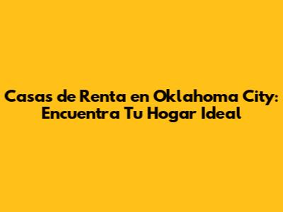 Casas De Renta En Oklahoma City: Encuentra Tu Hogar Ideal