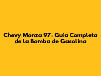 Chevy Monza 97: Guía Completa De La Bomba De Gasolina